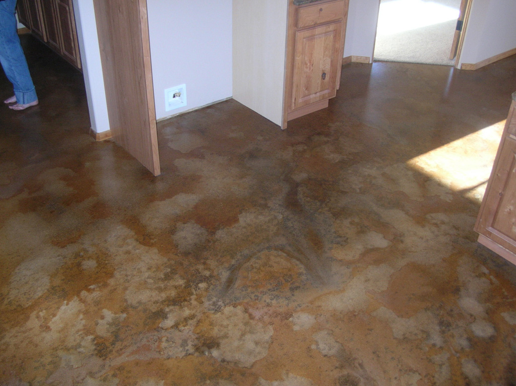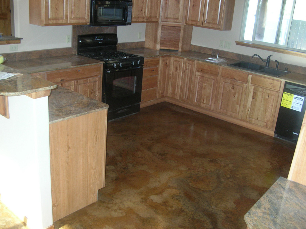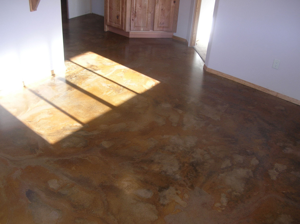 This East mountain project in the town of Tijeras, was done for Ryan Turner and Stone Mountain Builders. At his request he wanted and busy floor that had a similar look to the beautiful granite counter top he installed in this Spec Home. This concrete floor was Diamond Ground and then using techniques we were able to get this unique and beautiful floor. The floor was sealed using a epoxy system and topcoats.